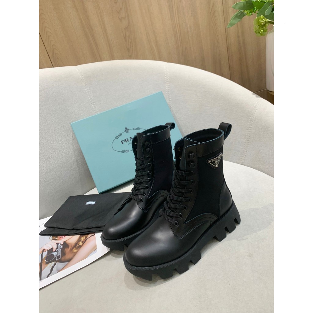 Prada 2023 outono e inverno nova cabeça redonda com solas grossas com botas Martin