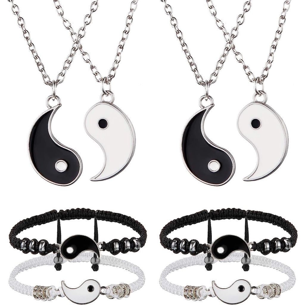 4 Pcs Colar De Pingente De Taichi Yin Yang Casais Pulseira De Harmonização De Moda Liga Enigma Jóias Set Para O Aniversário Do Dia Dos Namorados