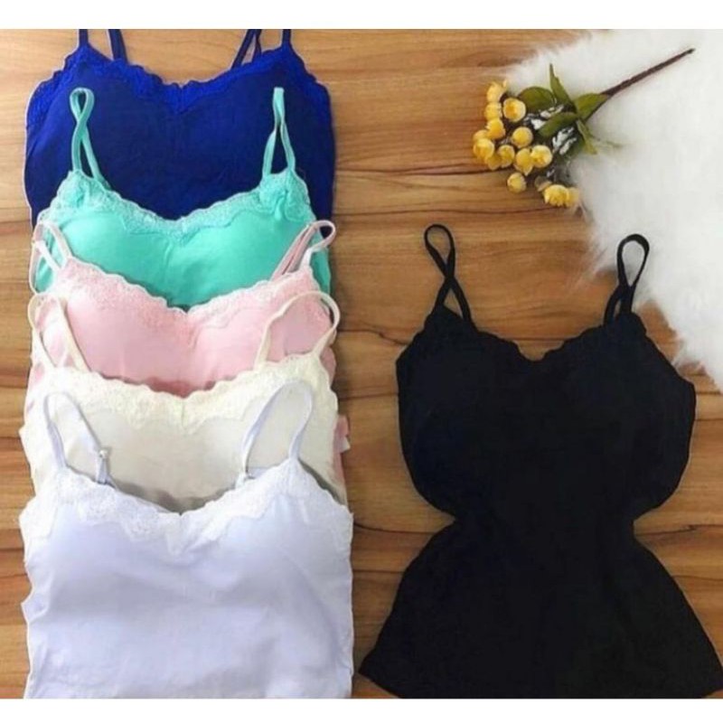 KIT 5 Regatinha de alcinha regata Feminina com Bojo Renda e alça regulável