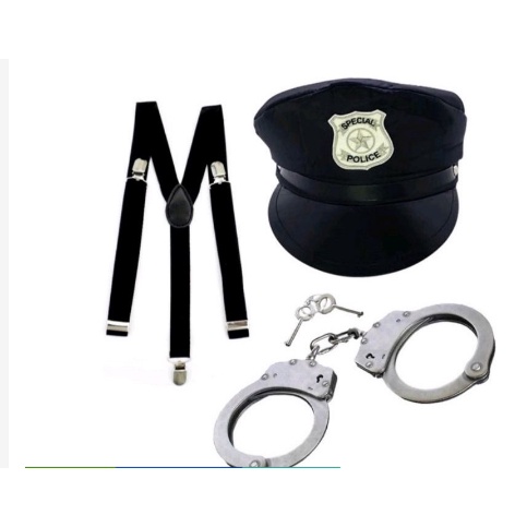 Kit Chapéu de Polícia/Policial e Algema e suspensório Fantasia Festa Cosplay