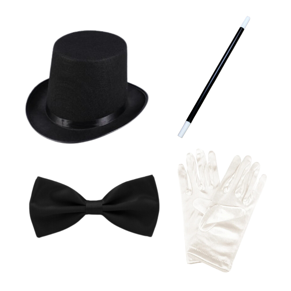 Fantasia de Mágico Cartola Varinha Gravata Chapéu Preto Adulto Cosplay Carnaval Masculino e Feminino