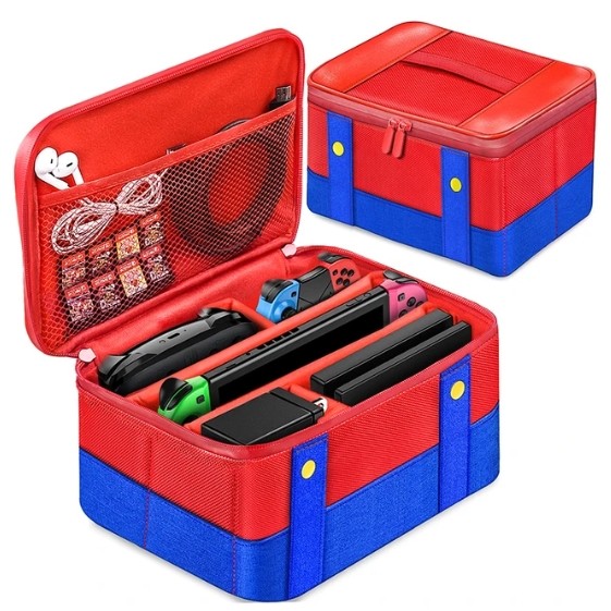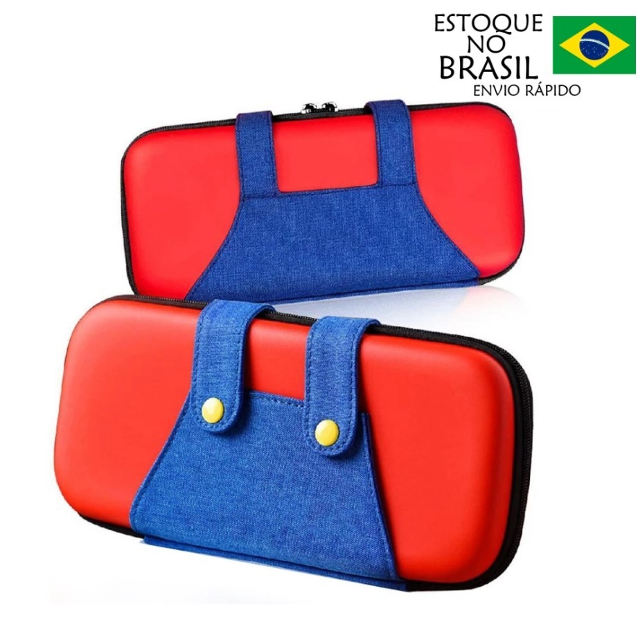 Case Capa Bolsa Estojo Transporte Premium Nintendo Switch Vermelha Preta Azul Macacão Mario Switch V1 V2 e Switch Oled - Proteção Resistente