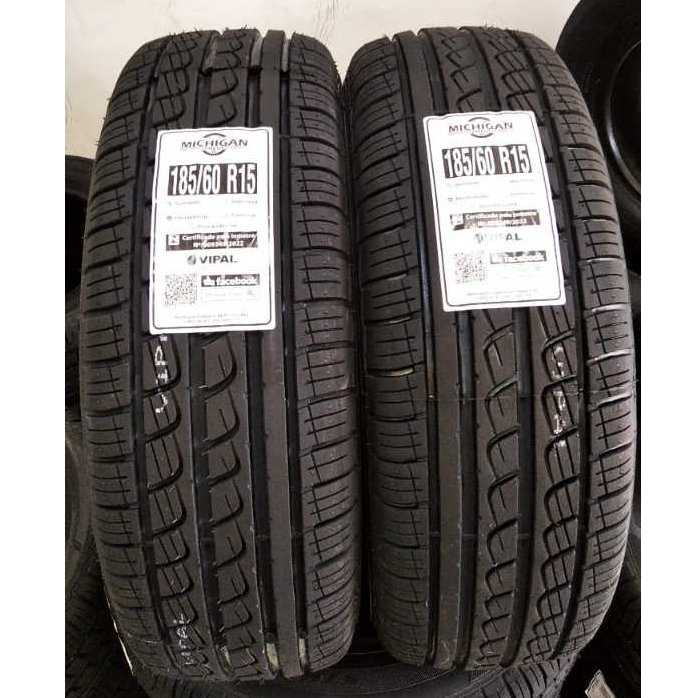 KIT 2 PNEUS CARRO 185 60 15 MICHIGAN ARO 15 BORRACHA VIPAL