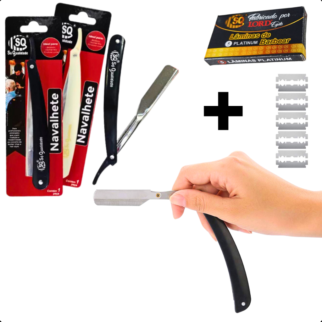 Kit Navalhete Para Barbear Profissional + 10 laminas Navalha para lâminas