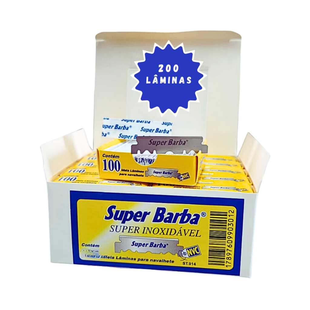 Kit Barbear 100 Meias Lâminas Superbarba+1 Navalhete Cabo Plástico Super barba
