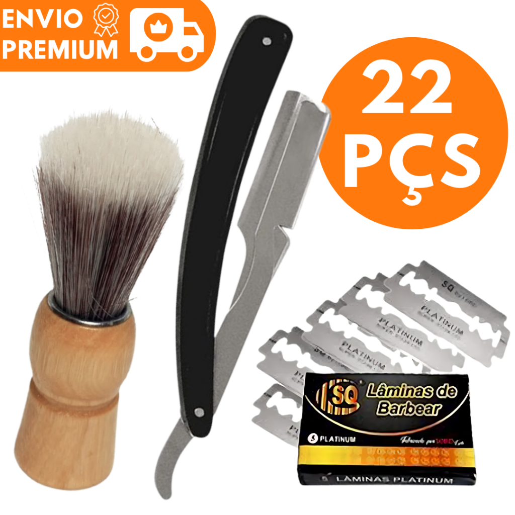 Kit Barba 22 Peças 1 Navalhete + 1 Pincel de Barbear + 20 Laminas Rosto Liso Suave Barbeiro Navalha