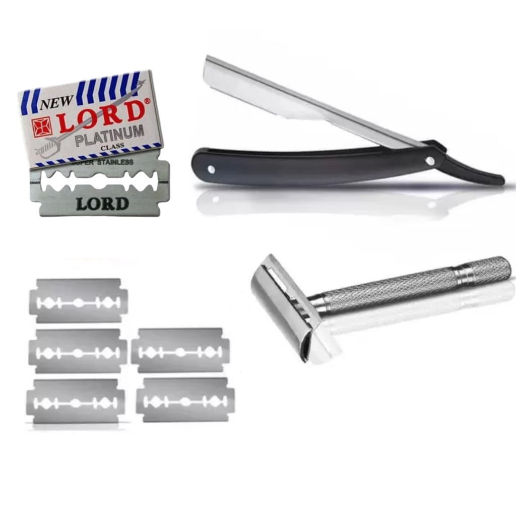 Kit Navalha Barbear Profissional +Aparelho Retro+ Navalhete Sekich + 5 Lâminas