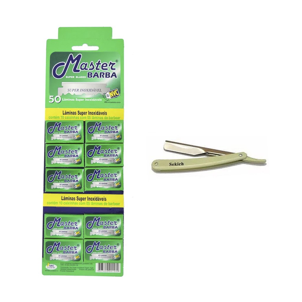 Kit de Barbear 50 Lâminas Master Barba + 1 Navalhete Sekich