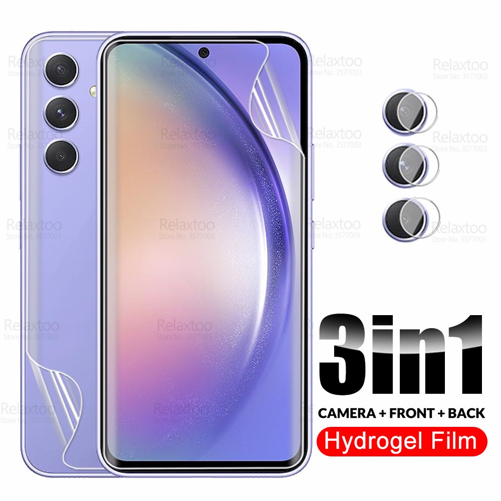 Filme Hidrogel De Vidro 3 Em 1 Câmera Para Samsung Galaxy A54 Protetor De Tela Sumsung A54 5G A 54 54A SM-A546B Filmes Macios Dianteiros E Traseiros