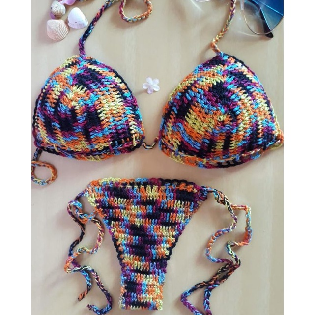 Biquíni de Crochê Top Bojo Calcinha Fio Dental Bikini Tendência