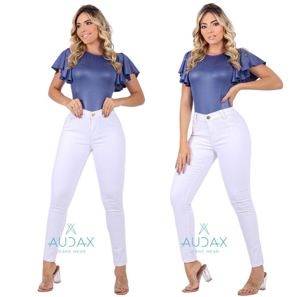Calça Jeans Feminina Branca Skinny Cintura Alta com Elastano