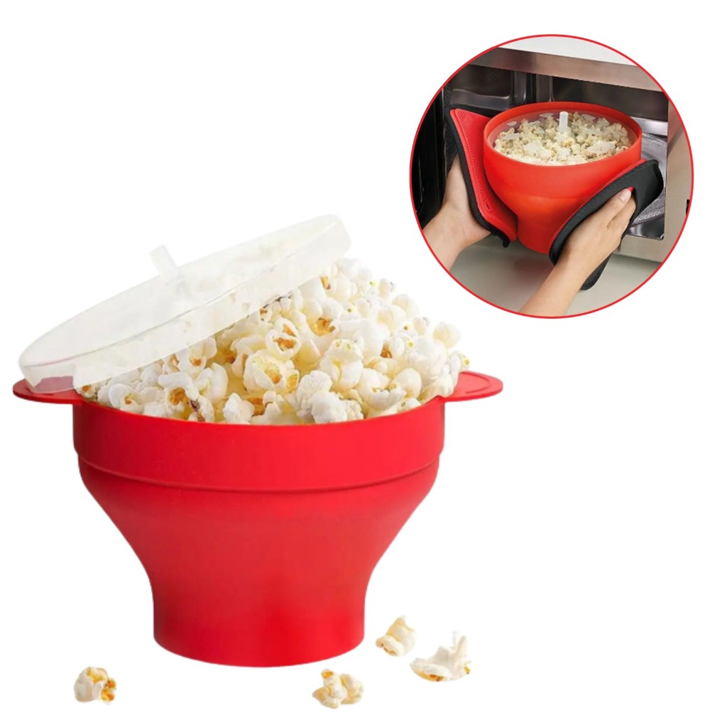 Pipoqueira De Silicone Balde De Pipoca Dobrável Com Tampa Para Micro-ondas Pipoca Sem Óleo Vermelha Utensilio Para Casa Cozinha