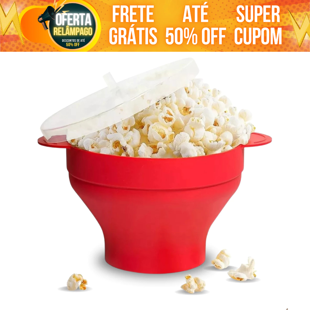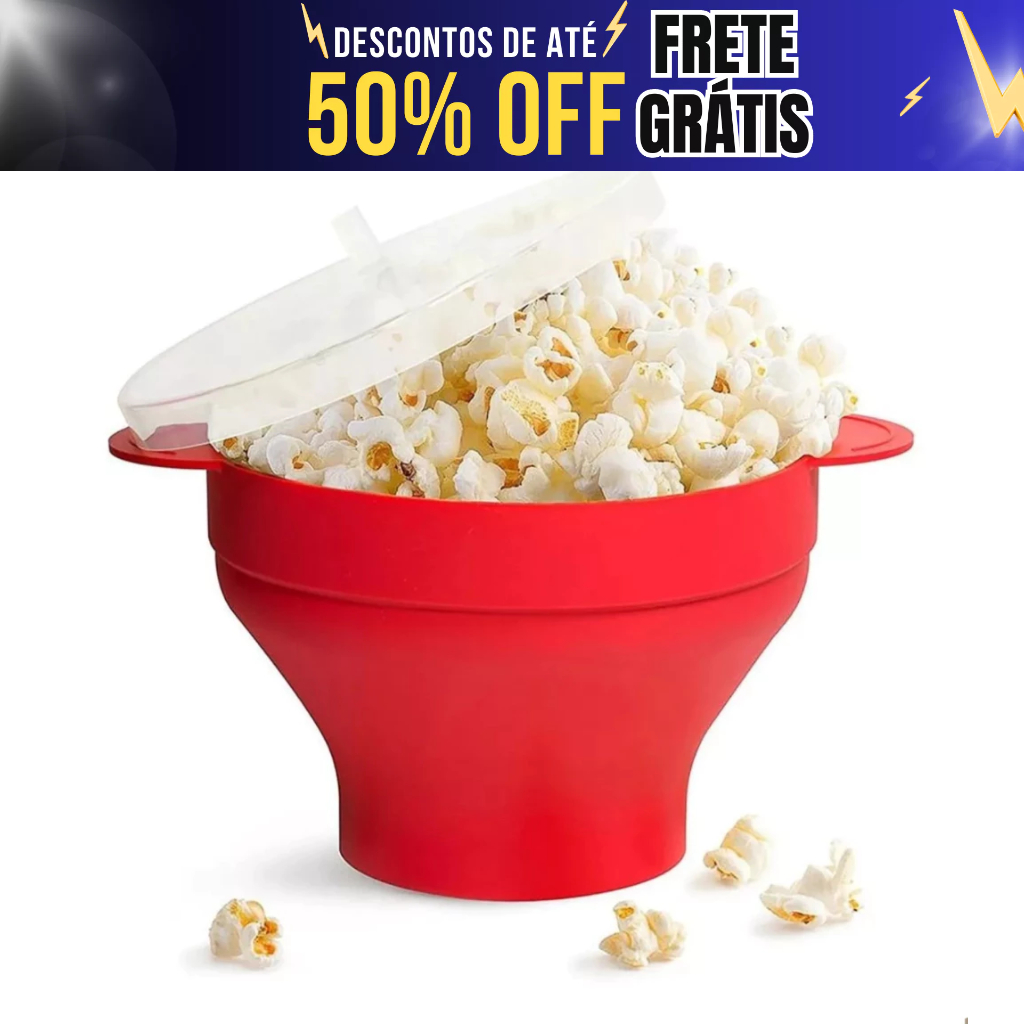 Pipoqueira De Silicone Para Micro-ondas C/ Tampa Balde De Pipoca Dobravel e Antiaderente Sem Oleo - Mori