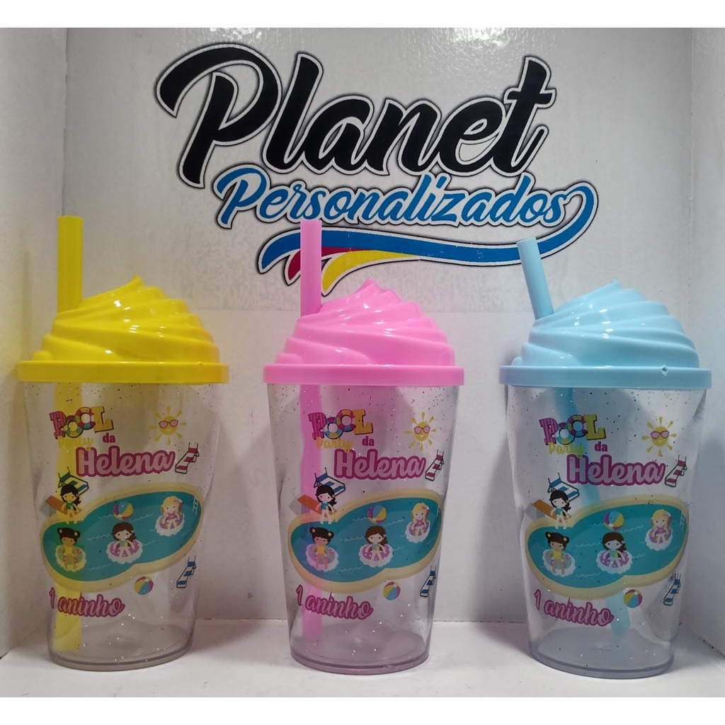 KIT COPO TWISTER PERSONALIZADO 300ML POOL PARTY (TAMPA CHANTILLY) 15 UNIDADES