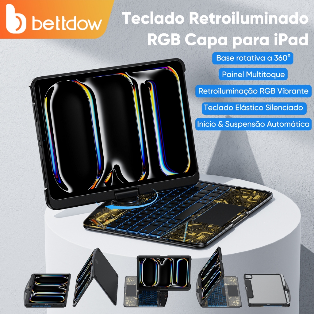 Bettdow Para Teclado ipad 3Gen Com Capa Air 4 Air5/Pro 11 2018-2021/Gen10 10.9 2022/12.9 Flutuante cantilever bluetooth Sem Fio