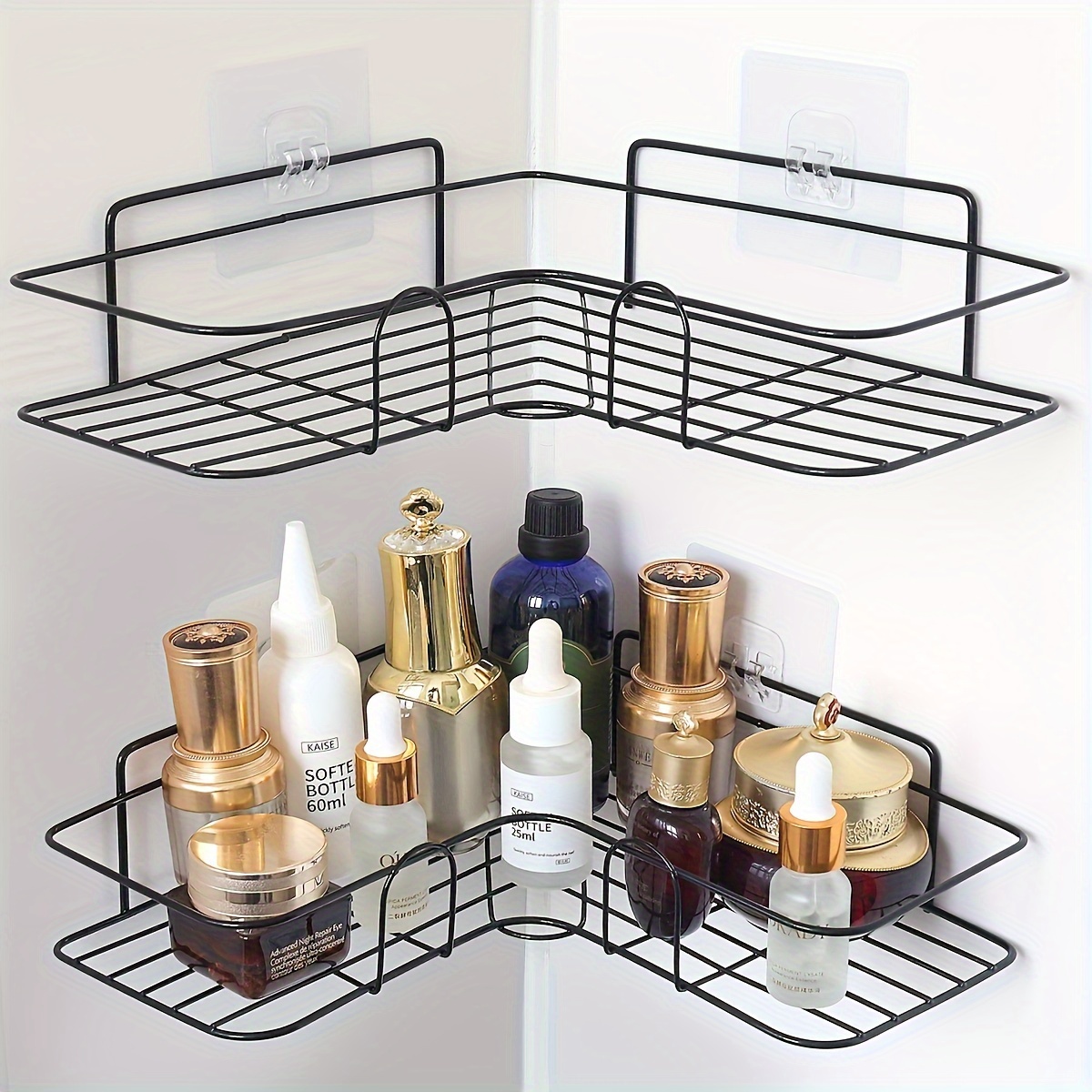 1pc White/Black Non Punch Bathroom Storage Rack Tripod Com 2 Adesivos Sem Costura Prateleira De Parede Para Banheiros
