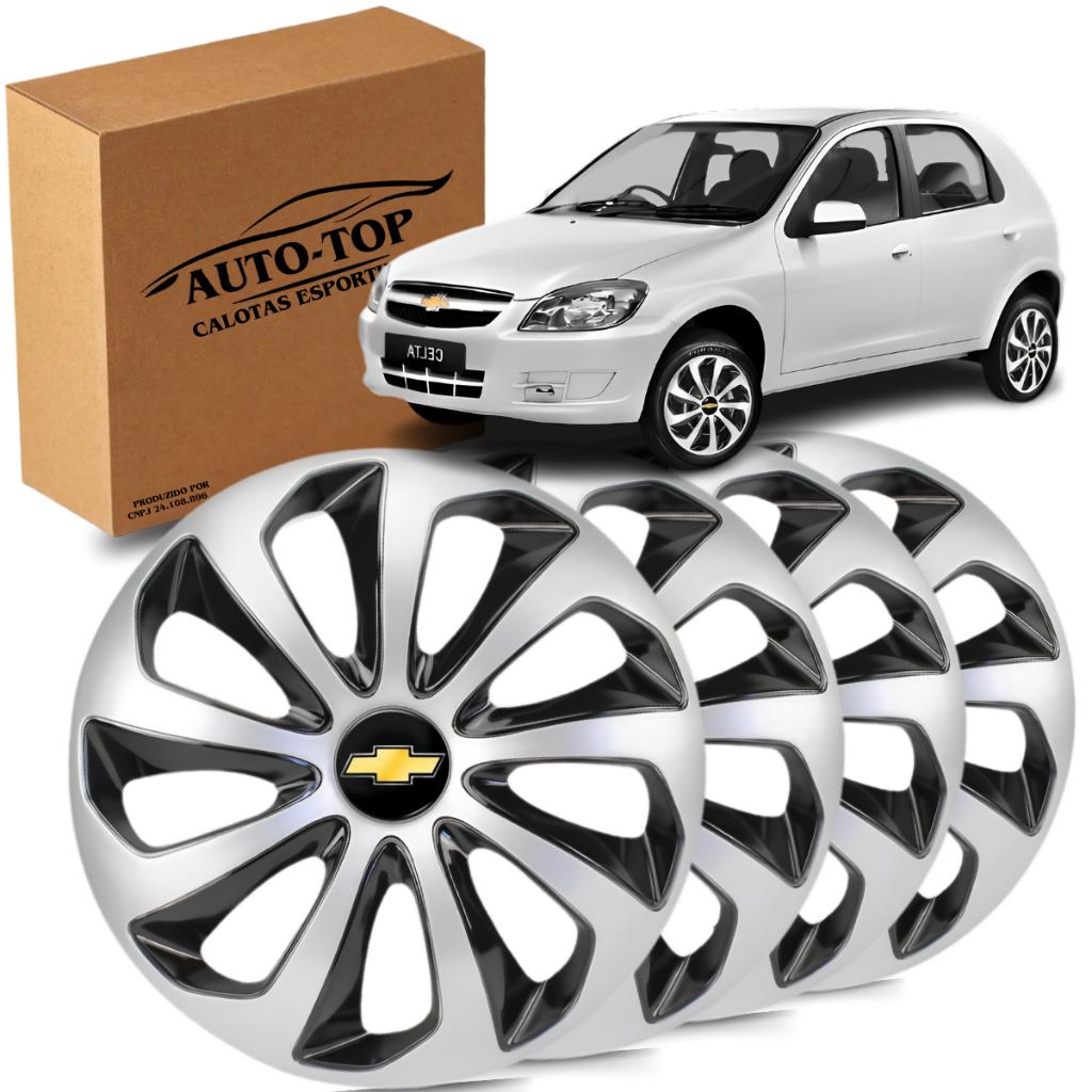 Jogo Calota Aro 13 Esportiva Velox GM Celta Onix Prisma Corsa Classic Sonic Agile Astra Vectra Monza Montana Prata Preta Silver Black