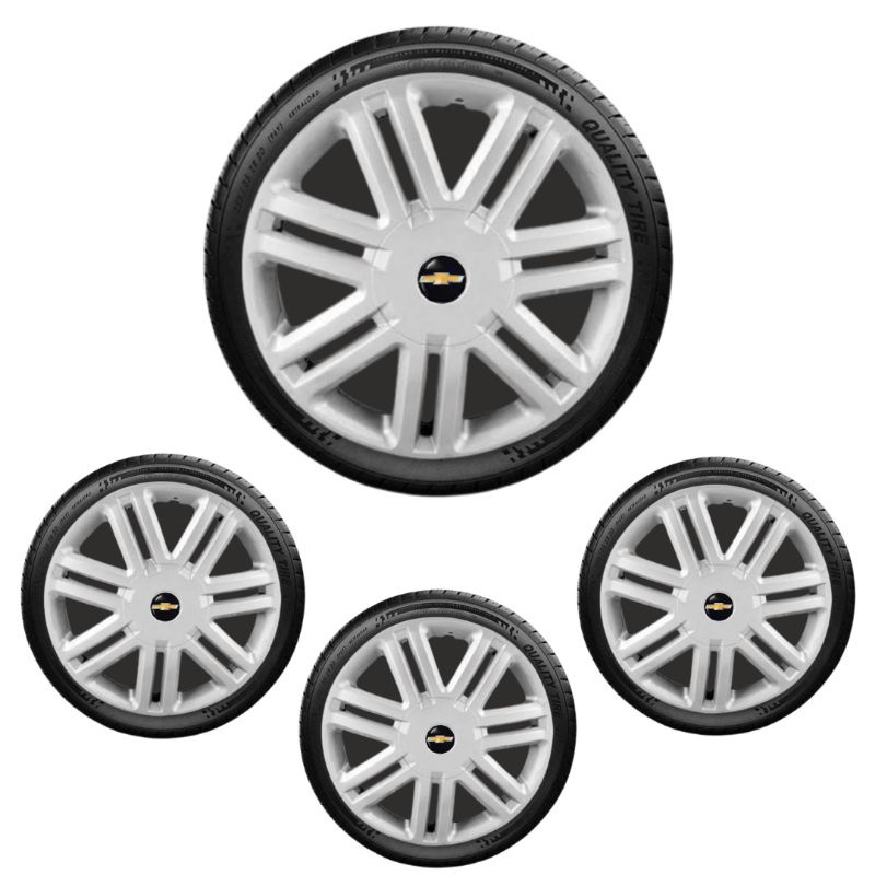 Kit Jogo Conjunto 4 Calotas Aro 13/14/15 Gm Chevrolet Celta Corsa Montana Onix Classic Prisma + Emblema Resinado
