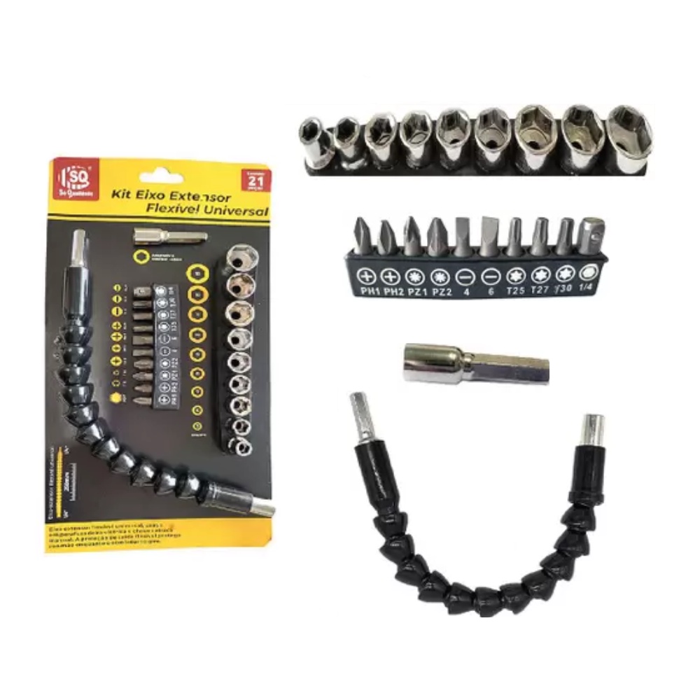 Extensão Eixo Prolongador 1/4 Ferramenta Braço Flexivel 30cm Cabo Extensor Adaptador Parafusadeira com 21 Peças