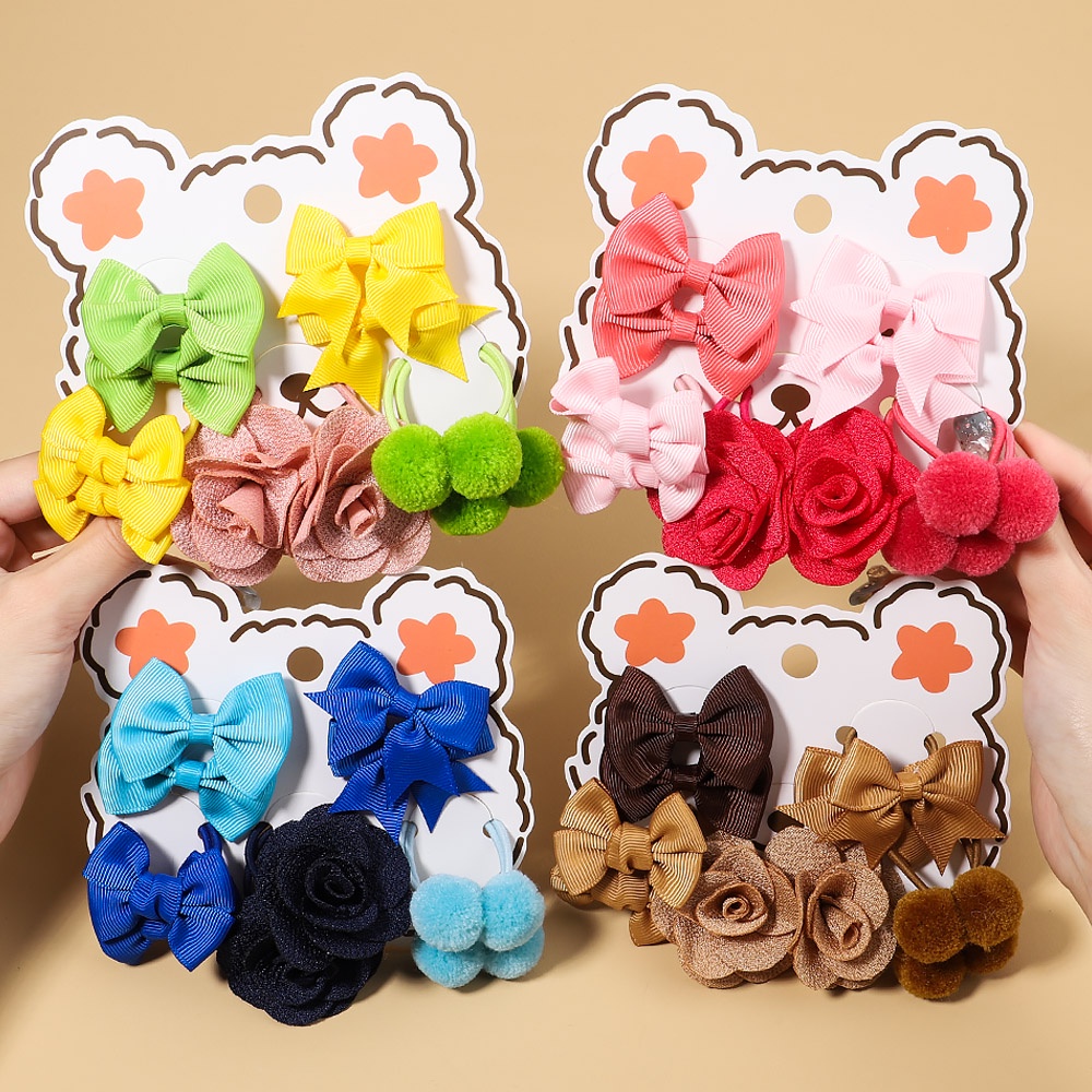 10Pcs/Conjunto Menina Fofo Laço De Flor Faixas De Borracha Para Crianças Cabelo Doces Acessórios Bebês Presente De Feriado