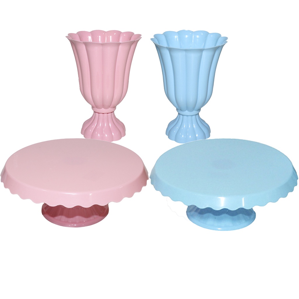 Kit 4 Para Decoração De Festa C/2 Vaso 1 Boleira 20cm E 2 Mini Cake - Maricota Festas