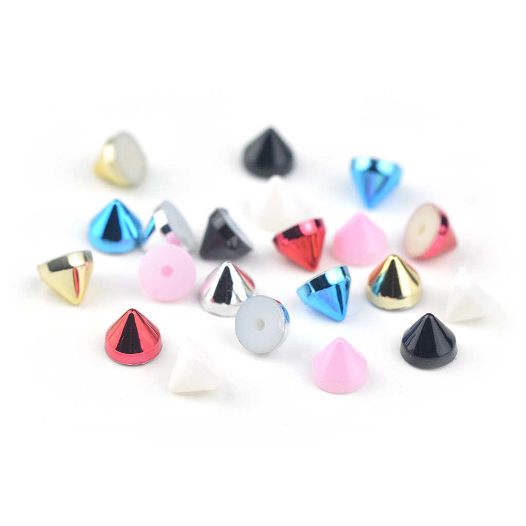 100pcs Silver / Gold / Black Plated Acrylic Cone Punk Studs Rivets Spikes for Shoes Bag Garment Decoration 6.5x5.2mm
