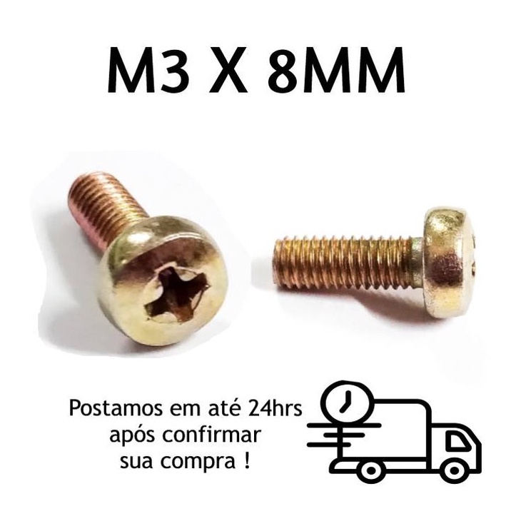 100 Pçs Parafuso Máquina Cabeça Panela Phillips M3 X 8mm