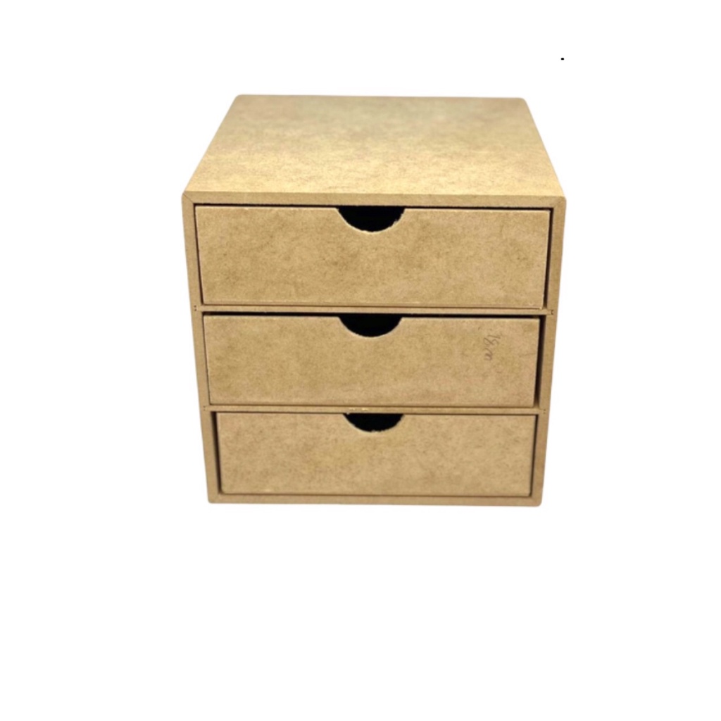 Organizador Gaveteiro para Folhas Acessórios Maquiagem MDF Cru 6 MM 3 Gavetas Para Mesa Escritório Porta Folhas A4 na vertical Suporta 500 folhas por gaveta com profundidade de 35 cm