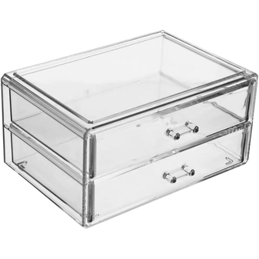 Organizador De Maquiagem Acrilico Porta Maquiagem Pinceis Joias Pulseiras Anéis com 2 gavetas penteadeira
