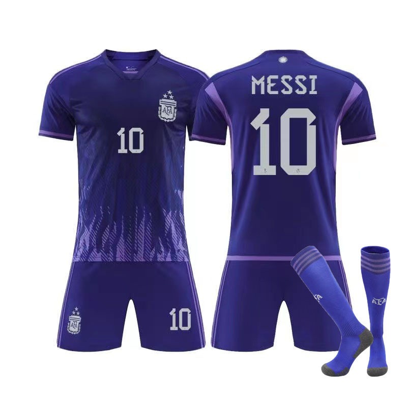 Uniforme De Futebol Argentina Jersey No . 10 Messi Fato Infantil Confortável Para Casa E Fora Adulto + Meias