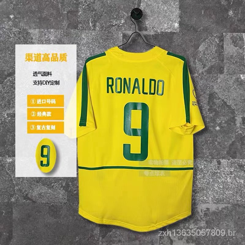 02 Brasil Jersey No. Copa Do Mundo 2002 Casa 9 Ronaldo Por 111 Camisa De Futebol Retro Manga Curta