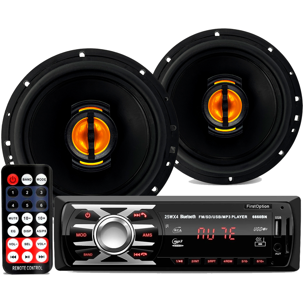 Par De Auto Falantes 6 Polegadas 110w Jb Flex + Radio Fm Carro Som automotivo Bluetooth Usb