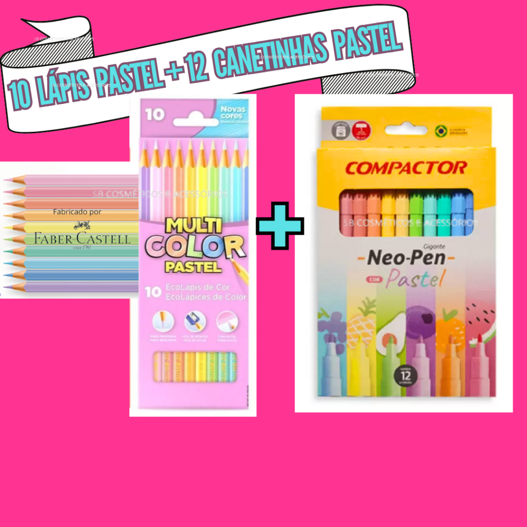 Kit 10 Lápis de cor PASTEL Multicolor( Faber-Castell )MAIS 12 CANETINHAS cores Tons Pastel COMPACTOR