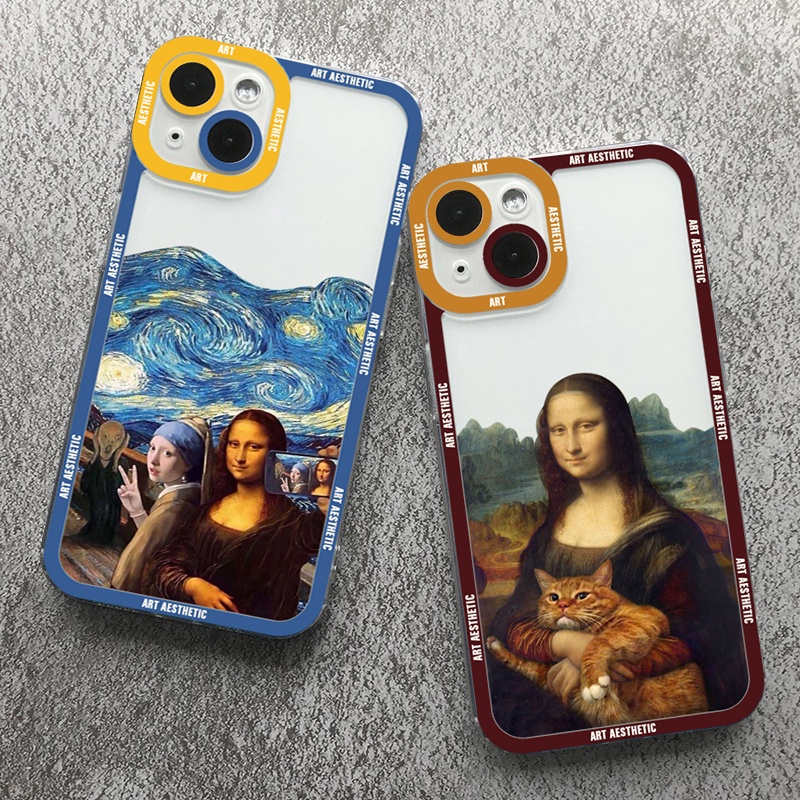 Arte Estética Van Gogh Mona Lisa O Gritar Divertido Gato Capa De Celular Para Samsung Galaxy A54 A53 5G A23 A52 A52S A32 A33 A73 A72 A13 A14 A34 A51 A71 Olhos De Anjo Capas De Silicone Macias