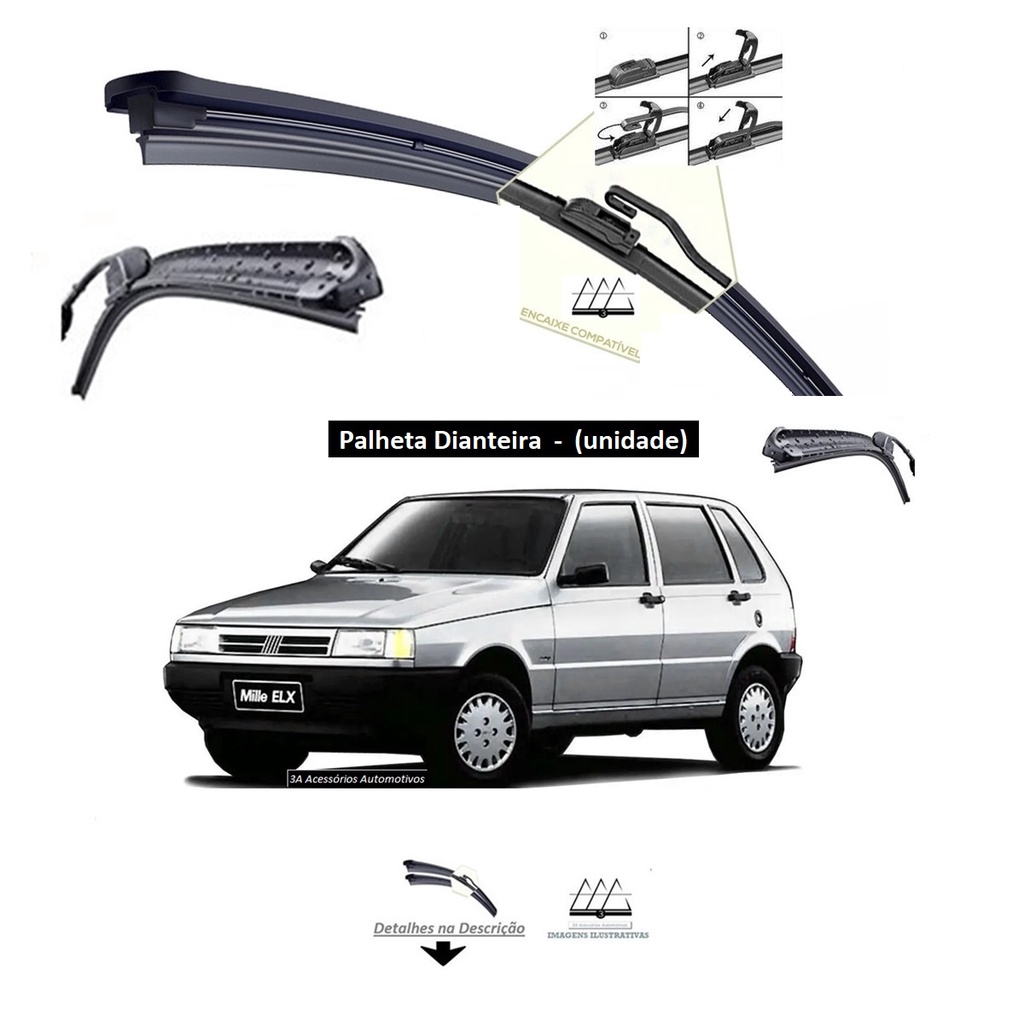 Palheta Limpador Uno Mille 1984 Até 2013 Fiat Para-brisa Dianteira Silicone 3A-G17 Encaixe Gancho