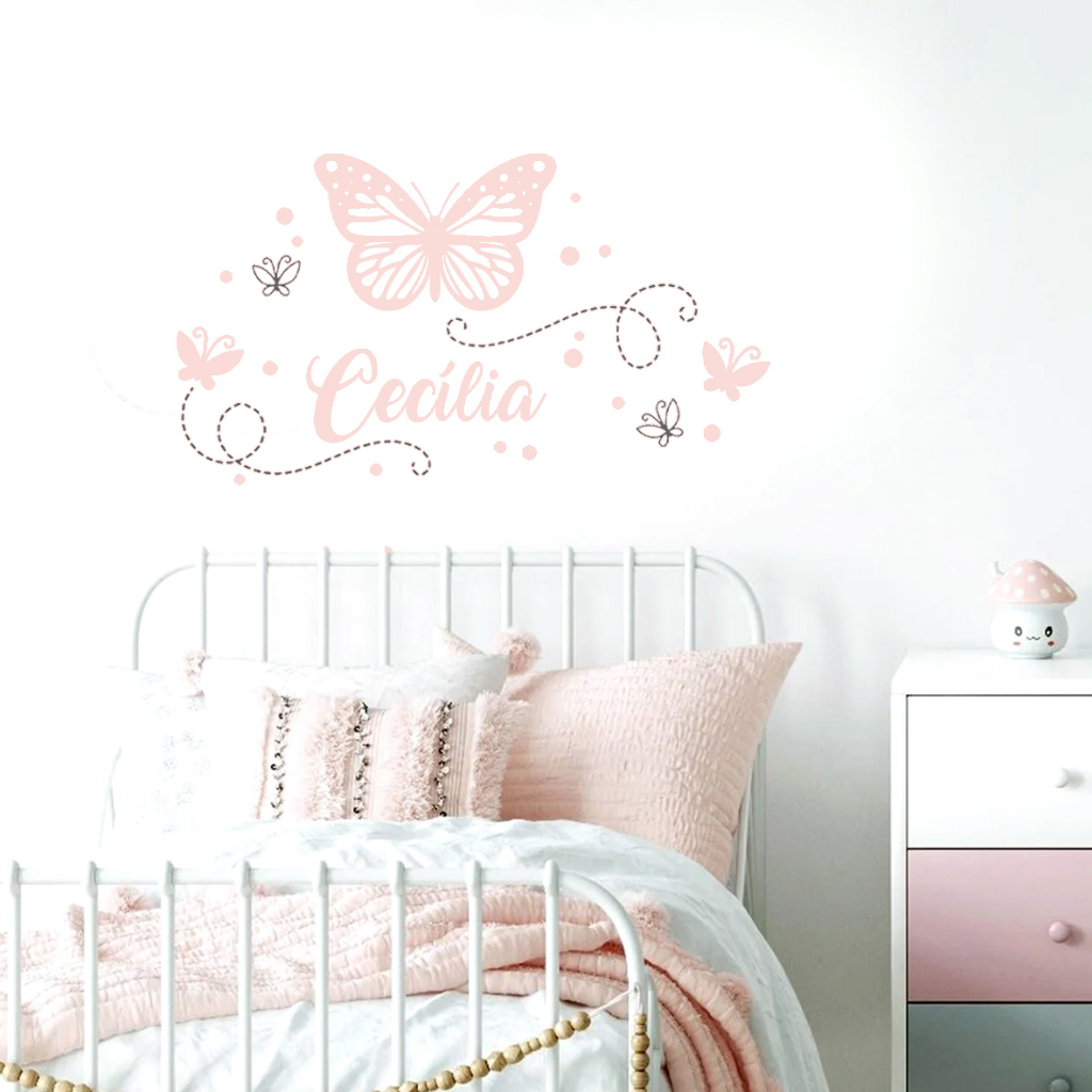 Adesivo de parede infantil Nome personalizado com borboleta quarto de menina decoração
