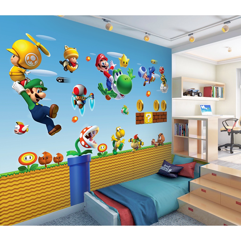 Papel de Parede Infantil Tema Super Mario Game Nintendo Para Quarto de Meninos Gamer