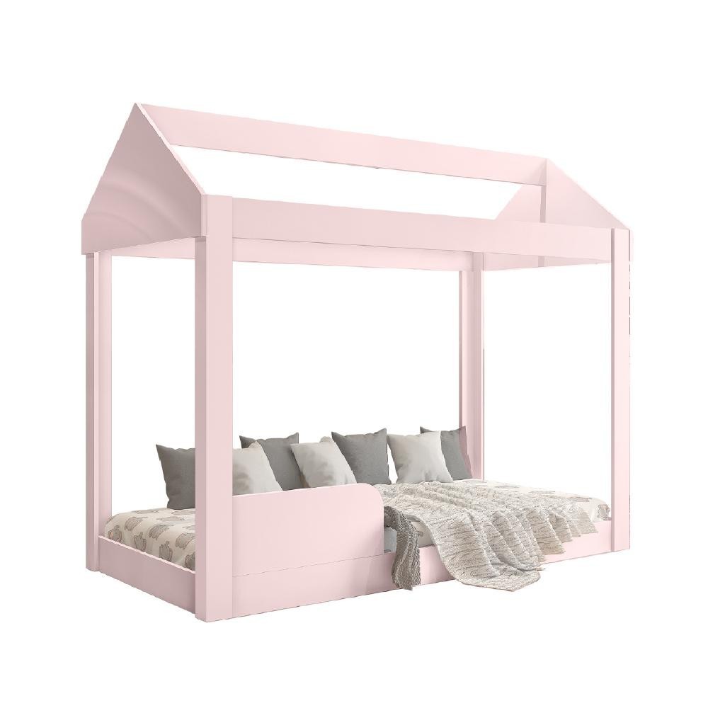 Cama Casinha Montessoriana Infantil com Voal Rosa Crystal - Branco