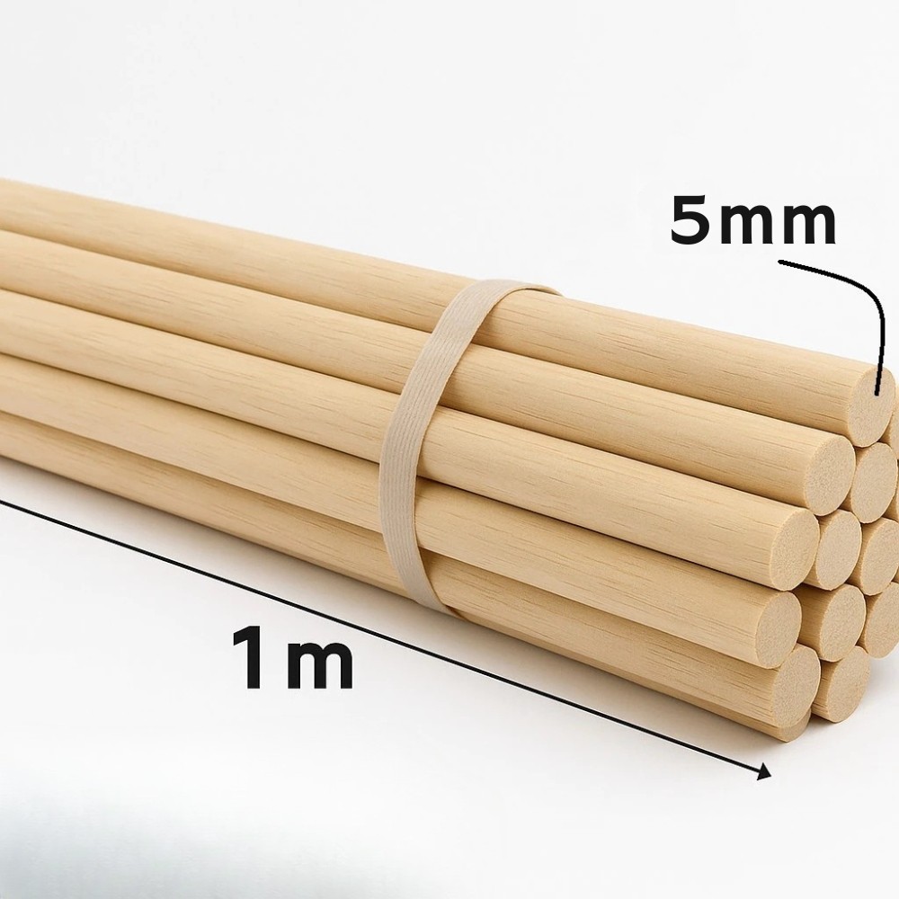 Cavilha Palito de Madeira Pinus 5mm X 1m Kit com 10 Bastões para Marcenaria e Artesanato