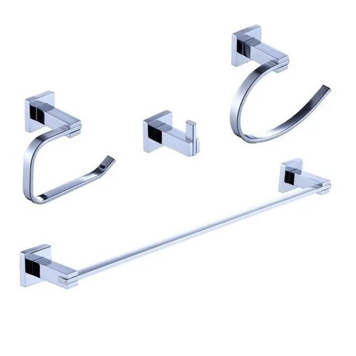 Kit de Acessorios Para Banheiro Base Quadrada Metal Cromado - BA004