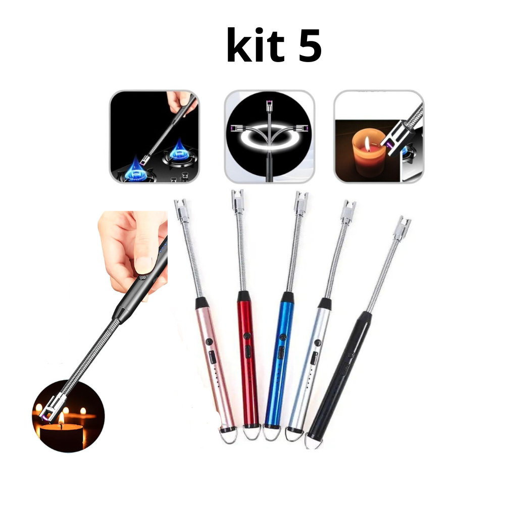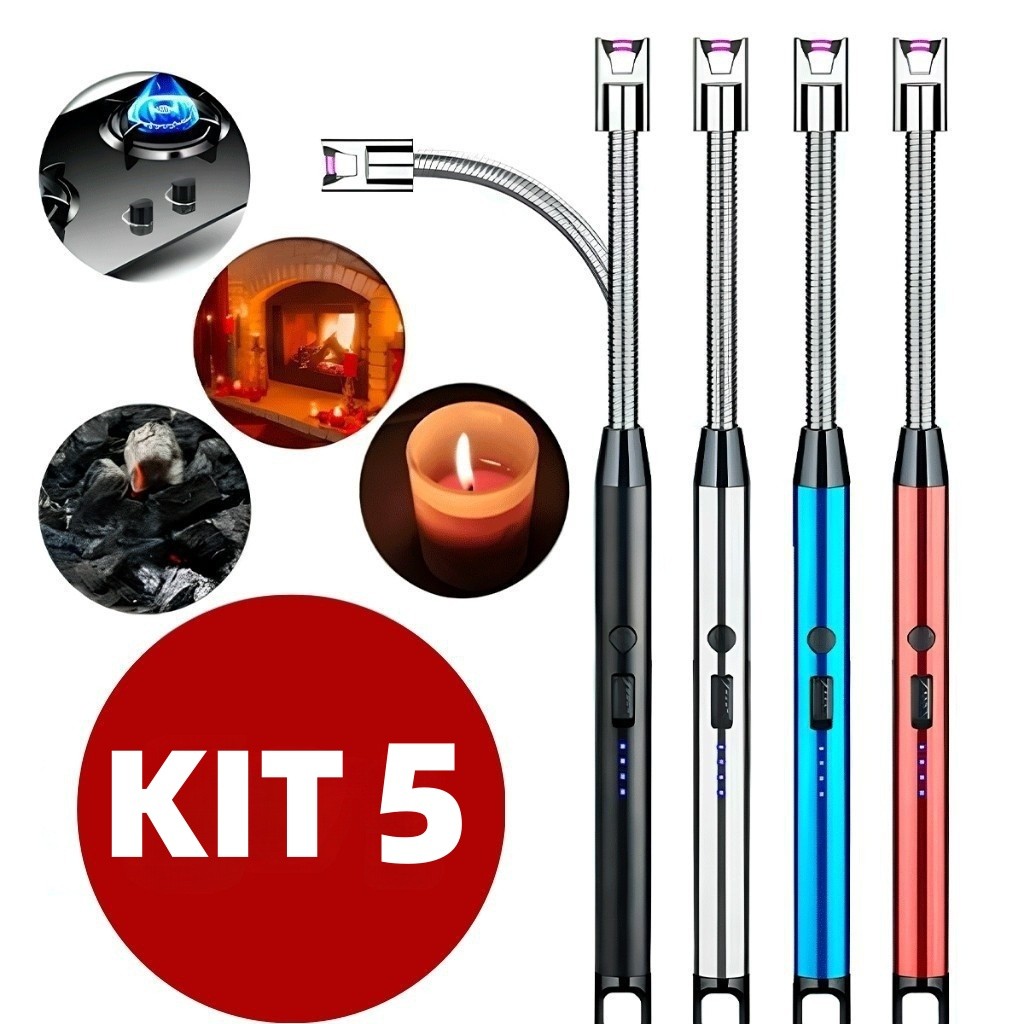 Kit 5 Isqueriros Acendedor De Fogão Isqueiro Eletrico Fogão Churrasqueira Vela Original Recarregavel UBS