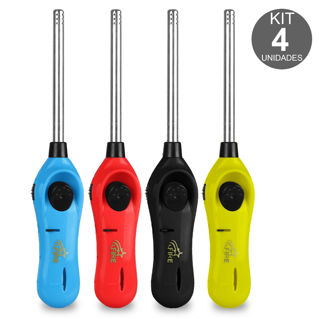 Kit Acendedor de Fogão Recarregável á Gas 26cm Isqueiro Maçarico Chama