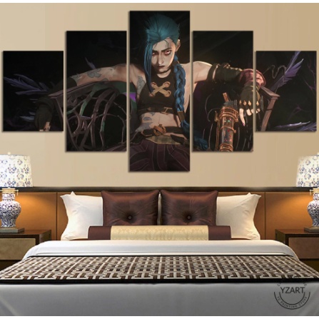 Quadros Decorativos mosaicos 5 peças Arcane Jinx crescida anime para sua casa, quarto ou sala