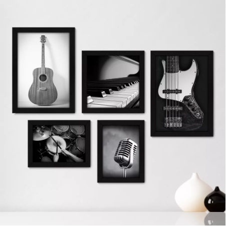 Quadros decorativos 5 peças mosaicos para sua sala ou quarto Instrumentos Musicais - Música - Escola de Música Star = 348