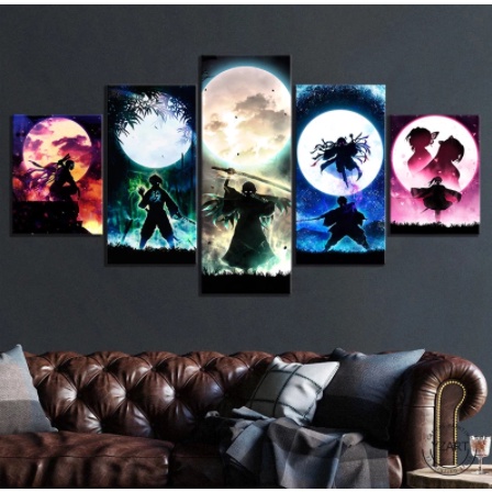 Quadros decorativos Mosaicos para sua sala ou quarto Kit 5 peças Anime kimetsu no yaiba Hashiramas abstrato