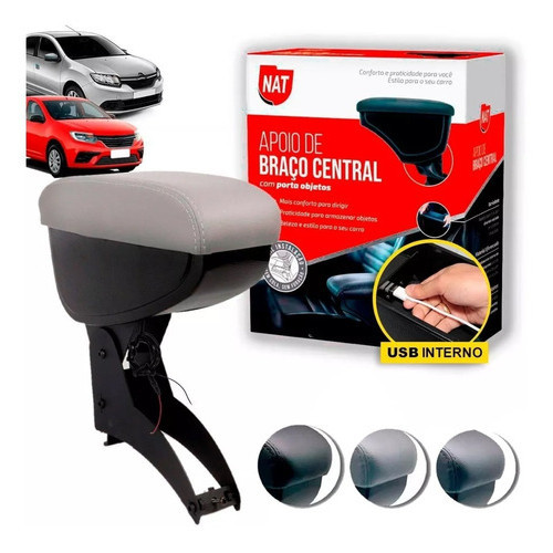 Encosto Descanso de Braço Apoio Renault Logan Sandero 2007 a 2020 Porta Objetos Couro Ecológico