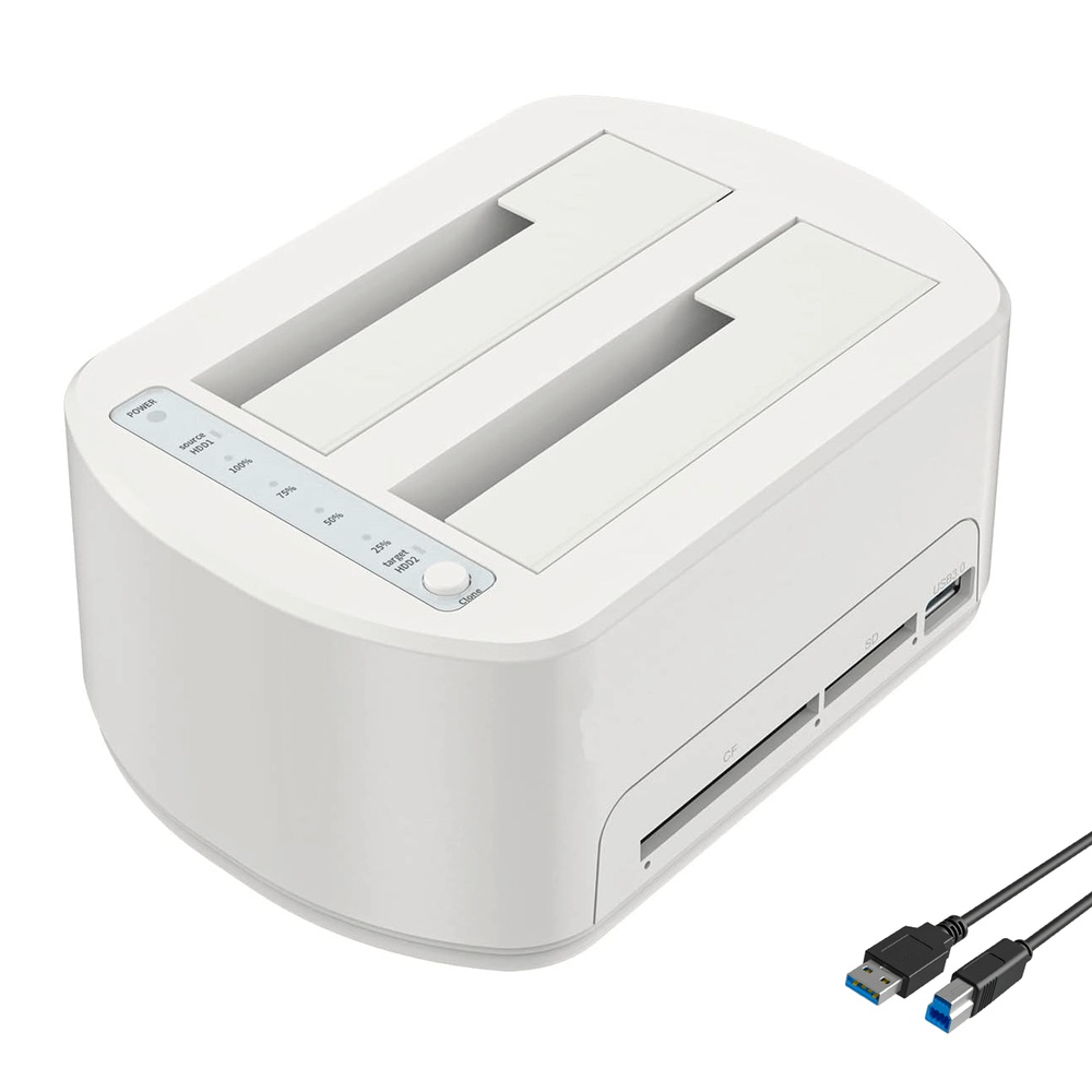 Dock Station Duplo HDD/SSD SATA 2.5" 3.5" MAIWO K3062CR Função Duplicador e Leitor CF e SD (Branco)