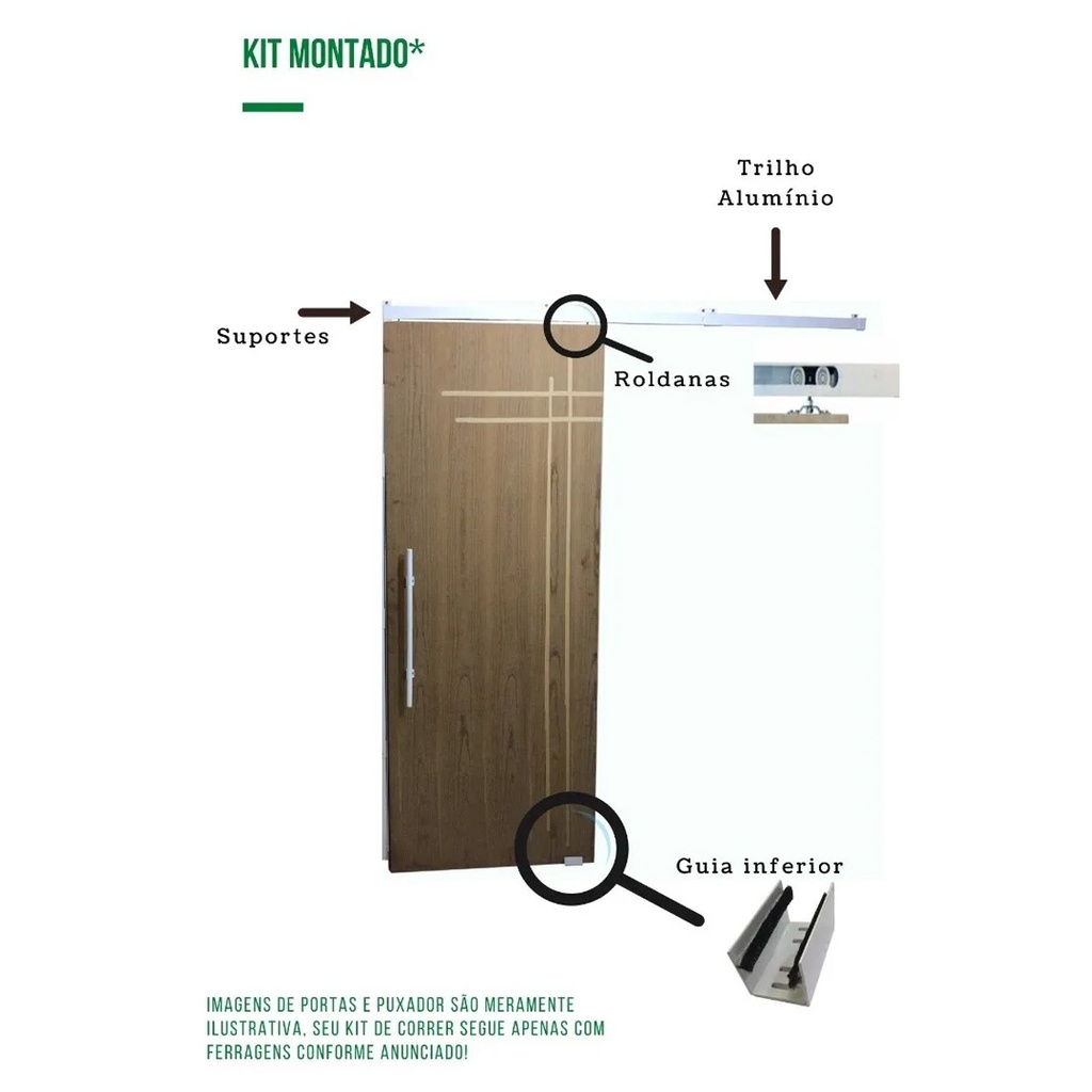 Kit p/ Porta Correr Trilho Alumínio 35x35 1,80m Natural