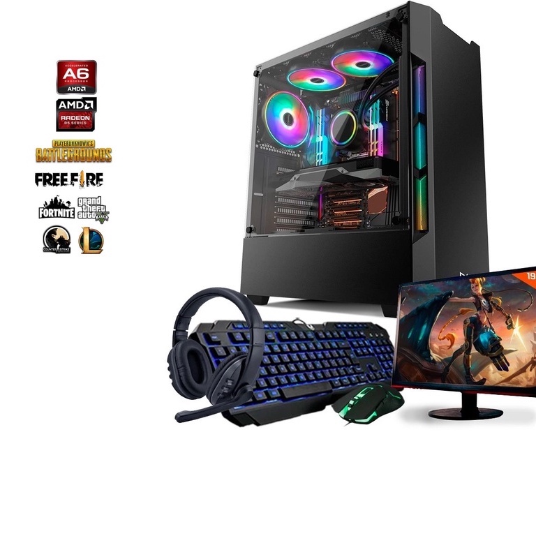 Pc Gamer Completo amd 6 núcleos 3.8Ghz 8GB ram Placa de vídeo Radeon 2GB HD 500GB Monitor 19.5 LED Kit Gamer Skill