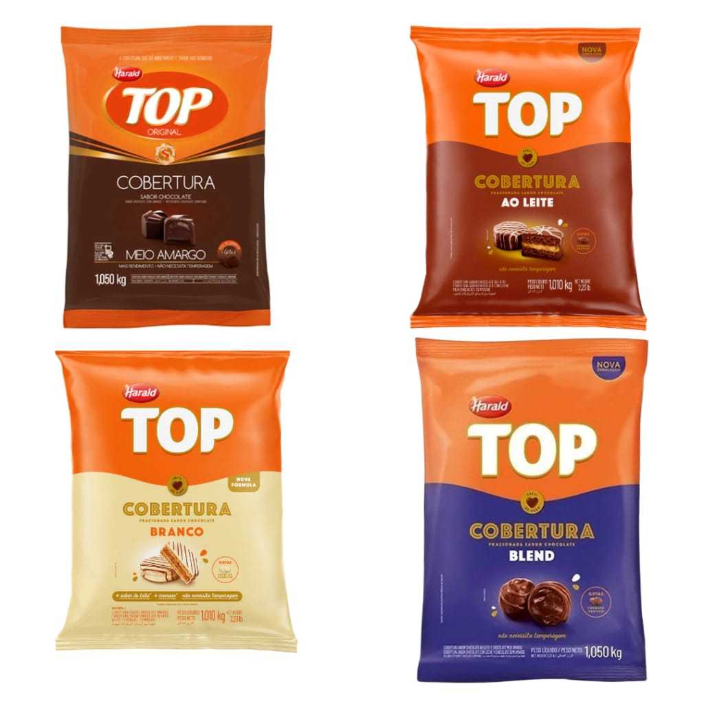 Kit cobertura de chocolate top gotas ao leite/ meio amargo e branco 400g cada - harald
